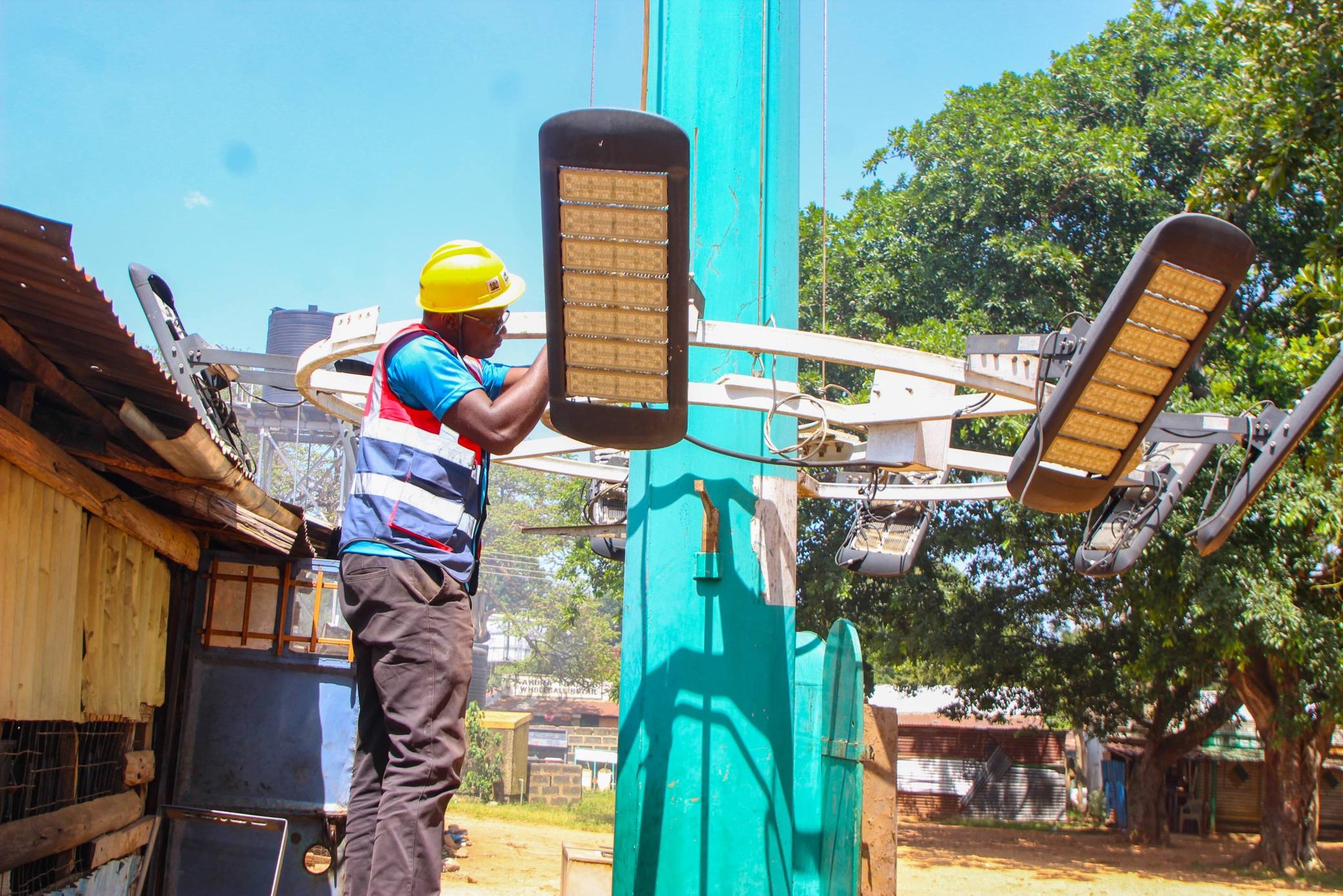 MALINYA MARKET HIGH MAST FLOODLIGHT REPAIRED TO ENHANCE MARKET SECURITY.